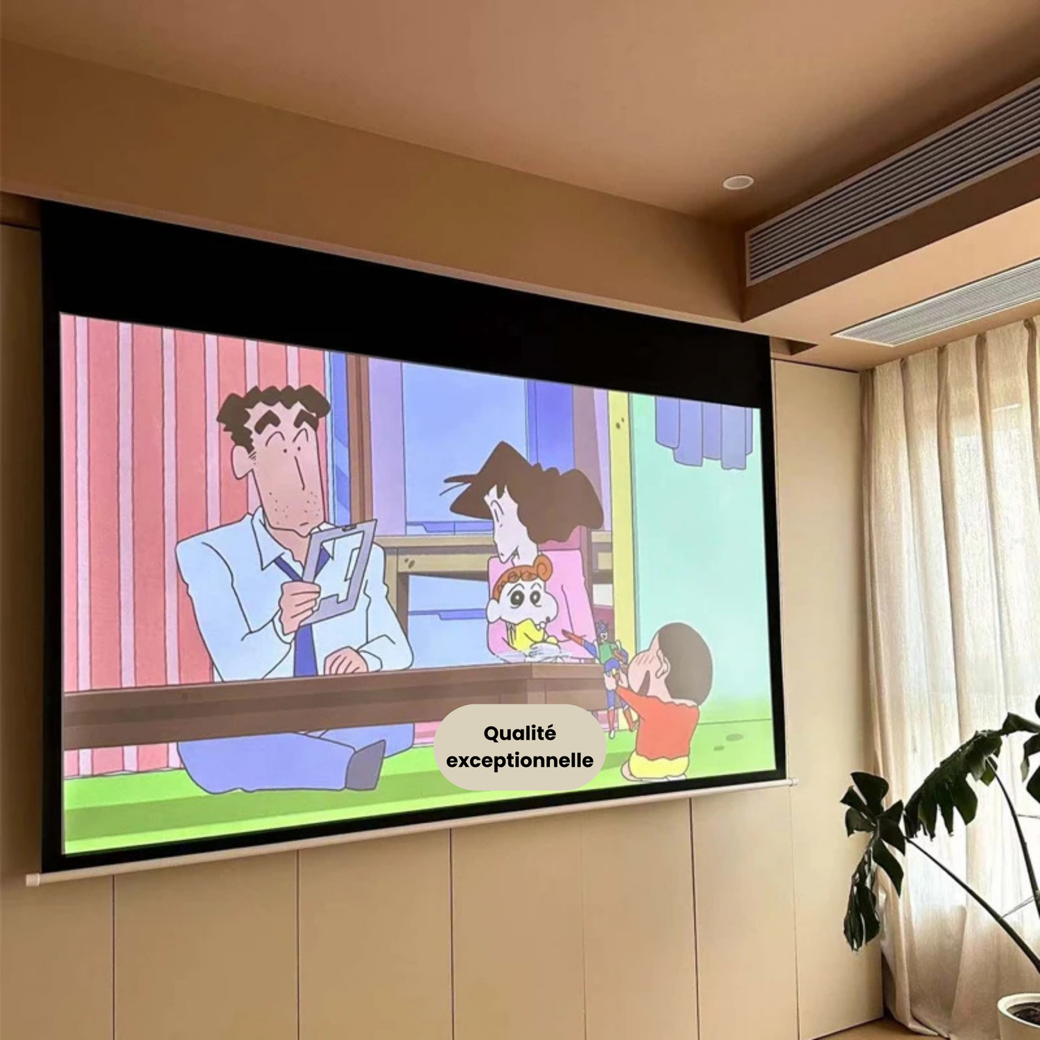 Conçu pour transformer votre espace en véritable salle de cinéma, cet écran de projection HD 72 pouces avec télécommande offre une image panoramique éclatante grâce à son format 16:9 et son tissu blanc mat haute précision.