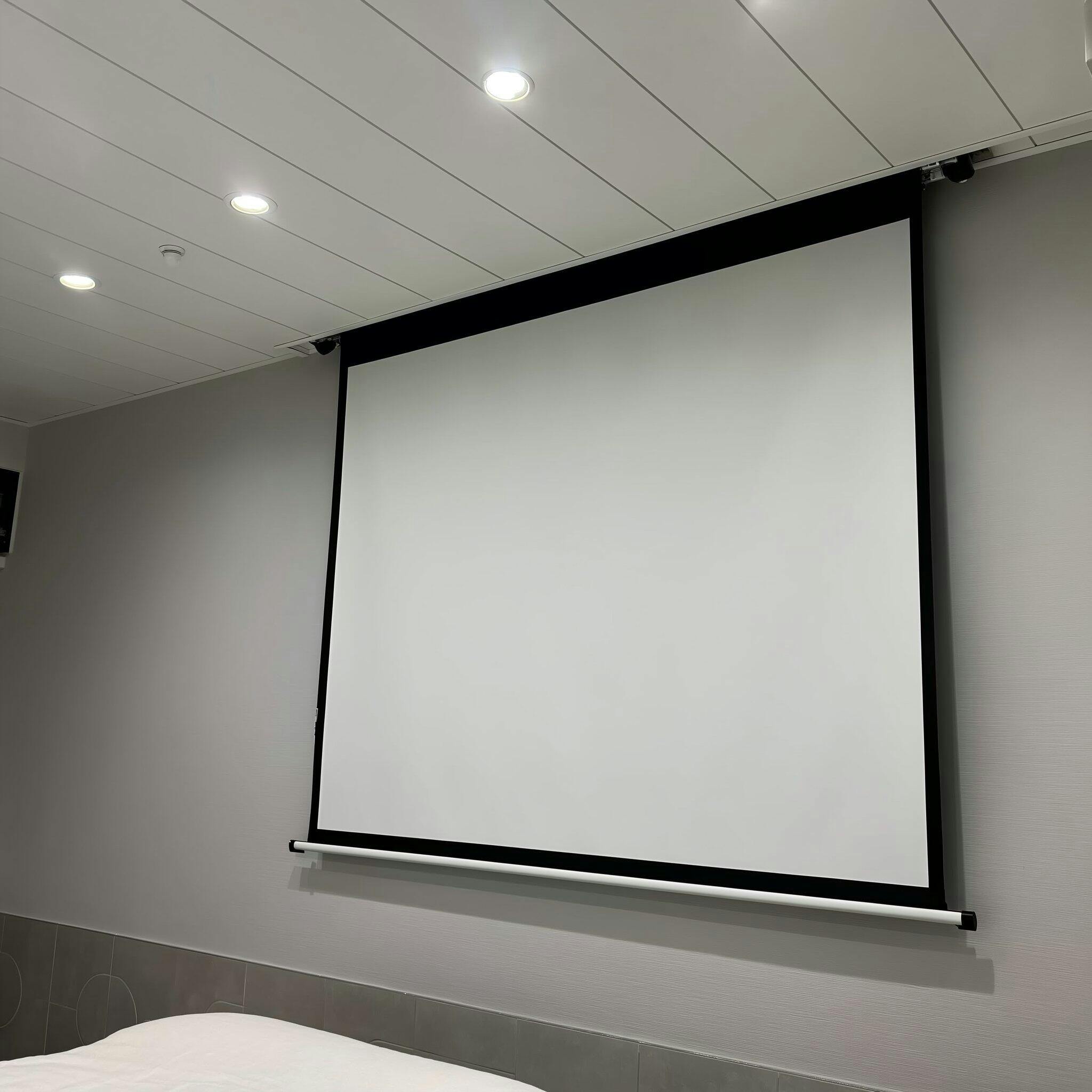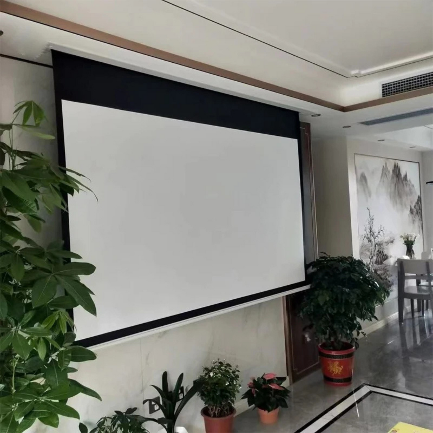 Son système motorisé silencieux permet une descente fluide de l’écran depuis le plafond ou le mur, pour une mise en place rapide et élégante.
