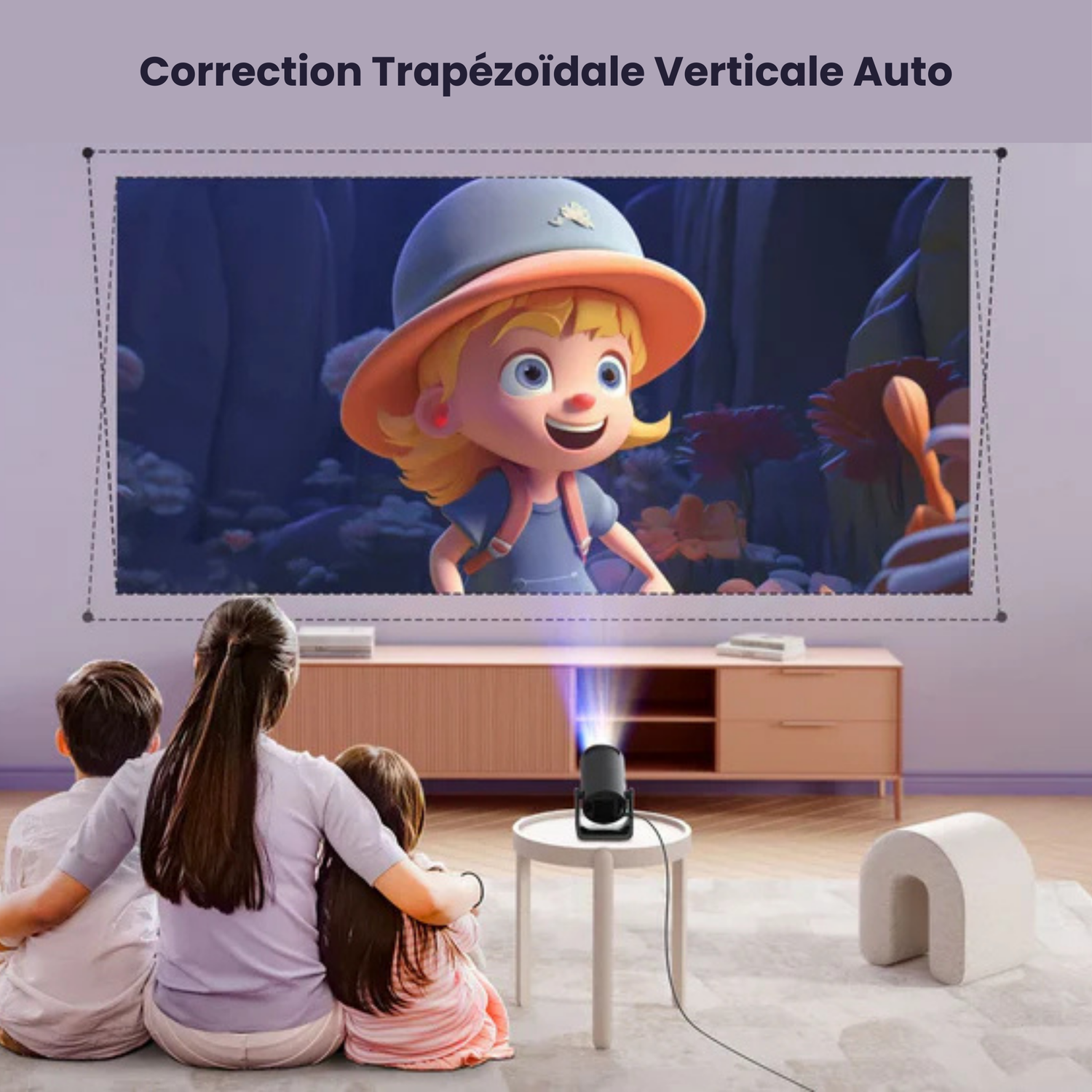 Grâce à sa correction automatique du trapèze, ce projecteur ajuste automatiquement l’image pour une vue parfaite sans distorsion. Sa taille compacte et son poids léger (1,0 kg) le rendent facile à transporter pour des projections en extérieur ou dans votre salon.