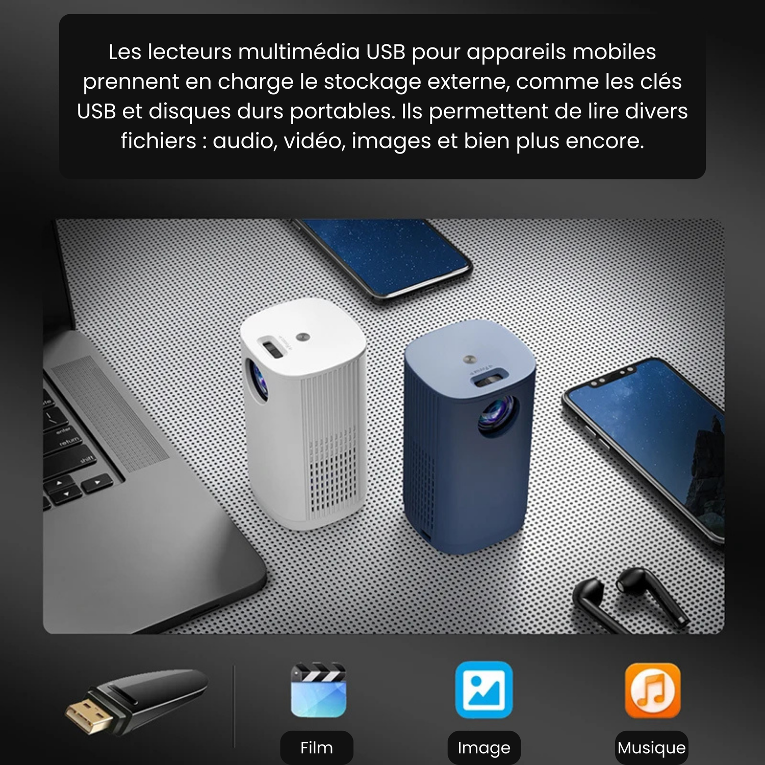 Offrez-vous une expérience cinématographique immersive avec le Mini Projecteur LED 1080P HD WiFi Android Portable, la solution idéale pour tous vos besoins multimédias !