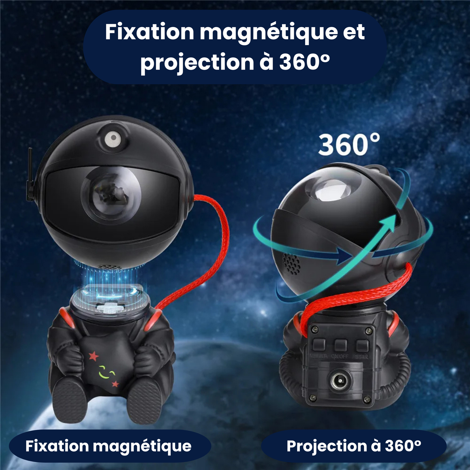 Transformez n’importe quel espace avec cet astronaute projecteur : chambre, salon ou voiture.