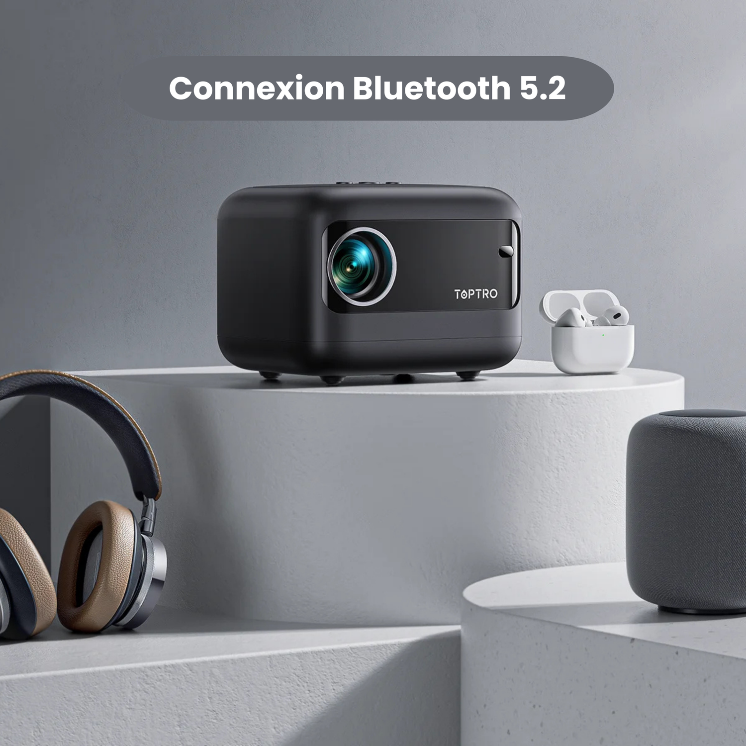 Vivez une expérience fluide avec WiFi 5G/2.4G et Bluetooth 5.2, idéaux pour diffuser films et jeux sans latence sur ce projecteur portable TOPTRO TR25 Mini.