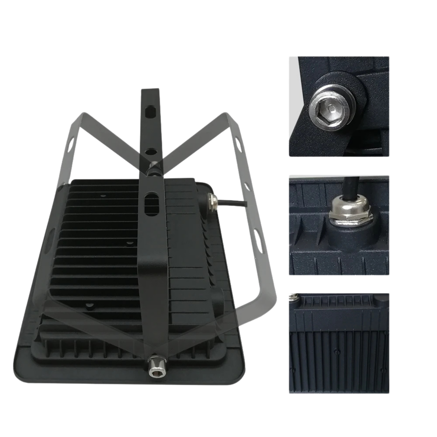 Conçu en aluminium moulé et verre trempé, ce projecteur allie design moderne et performance.