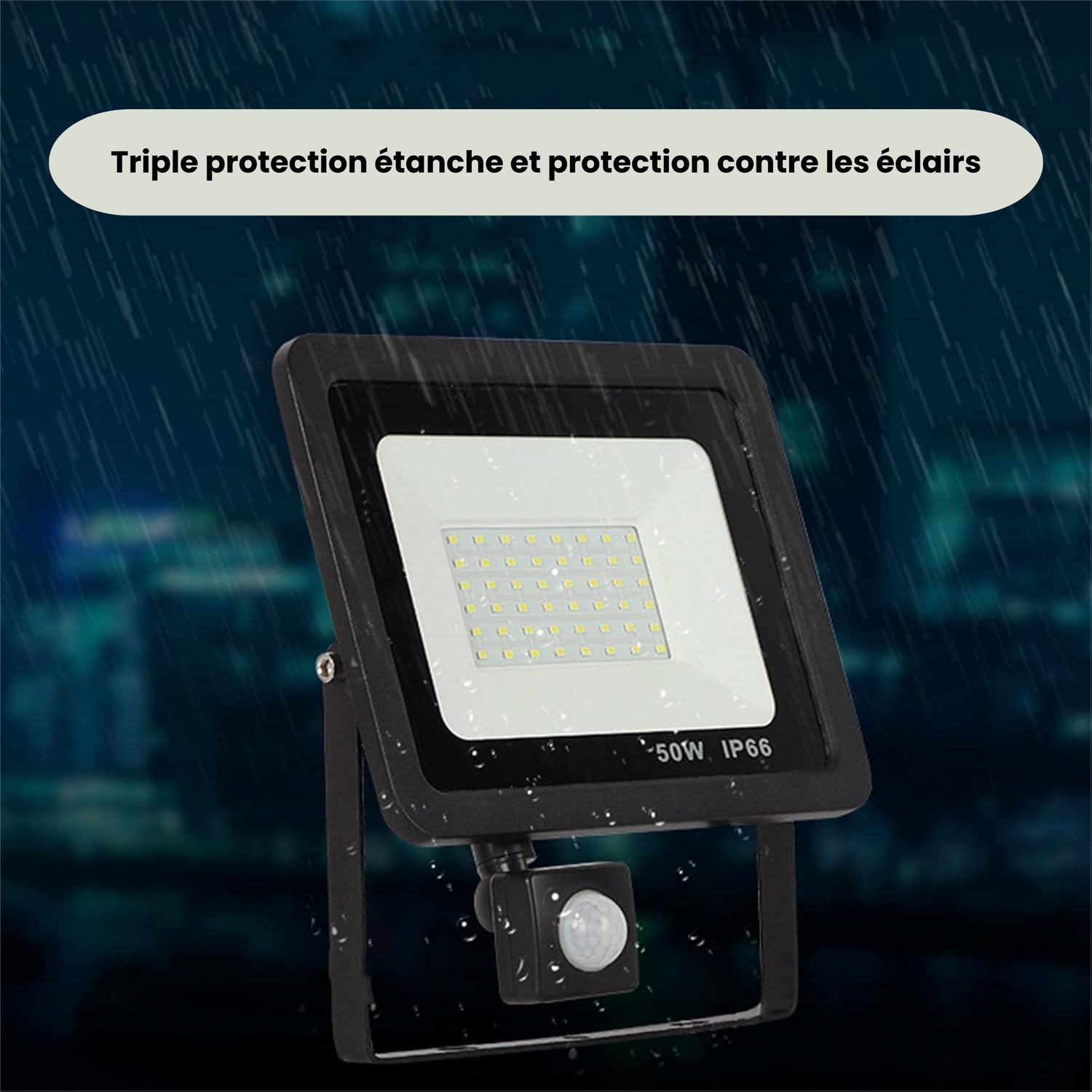 Le projecteur LED extérieur avec détecteur PIR est l’outil idéal pour sécuriser et illuminer vos espaces extérieurs. Disponible en puissances de 30W, 50W et 100W, il vous offre une lumière vive et stable avec une détection de mouvement fiable.