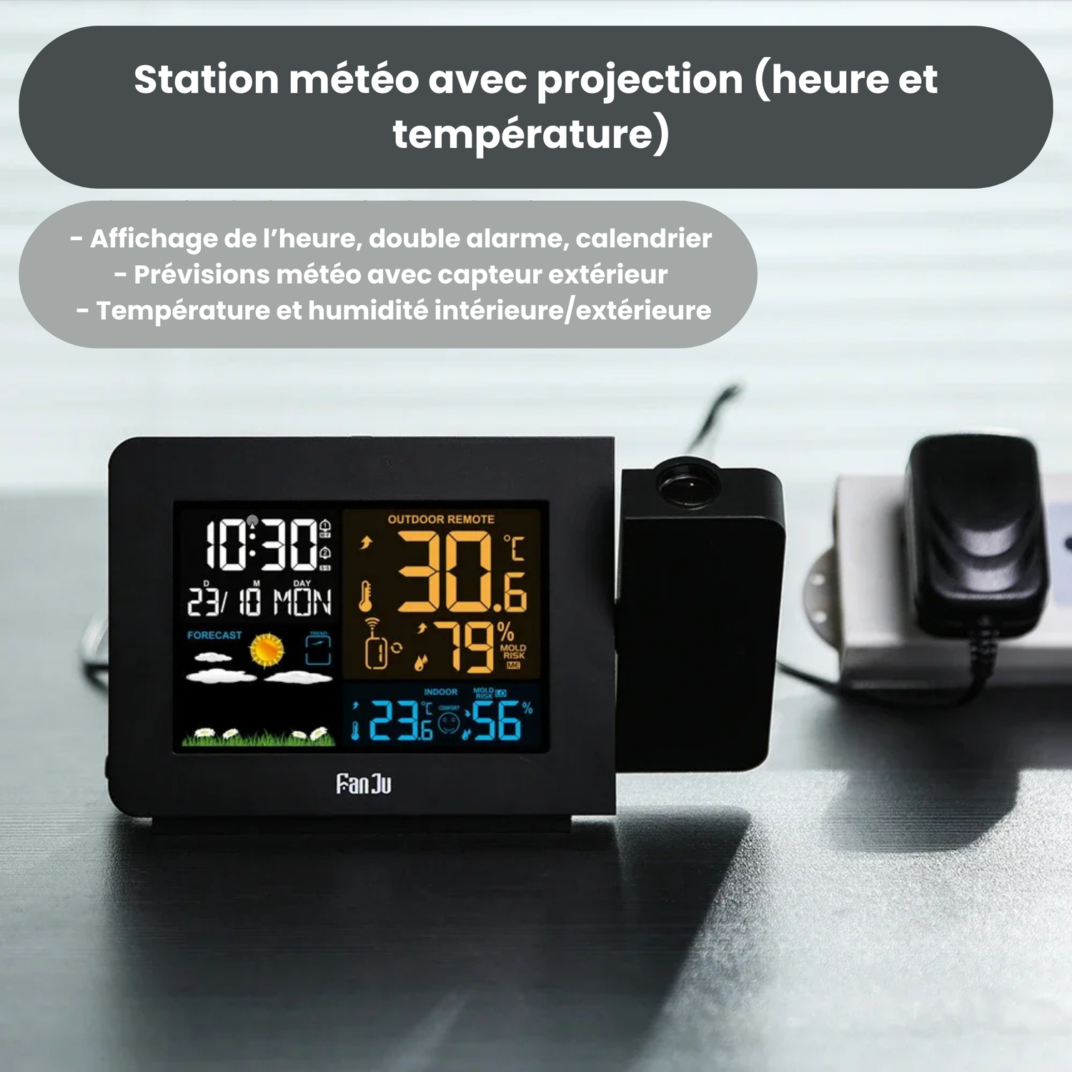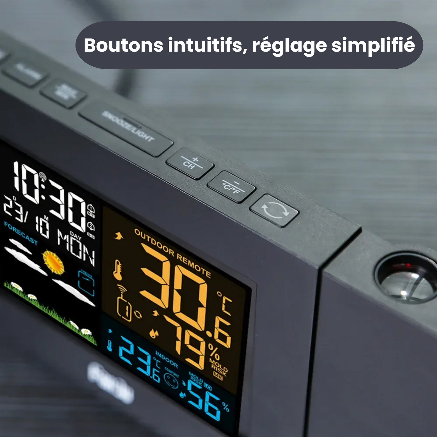 Radio Réveil Projecteur avec Station Météo, DCF, 7 Langues