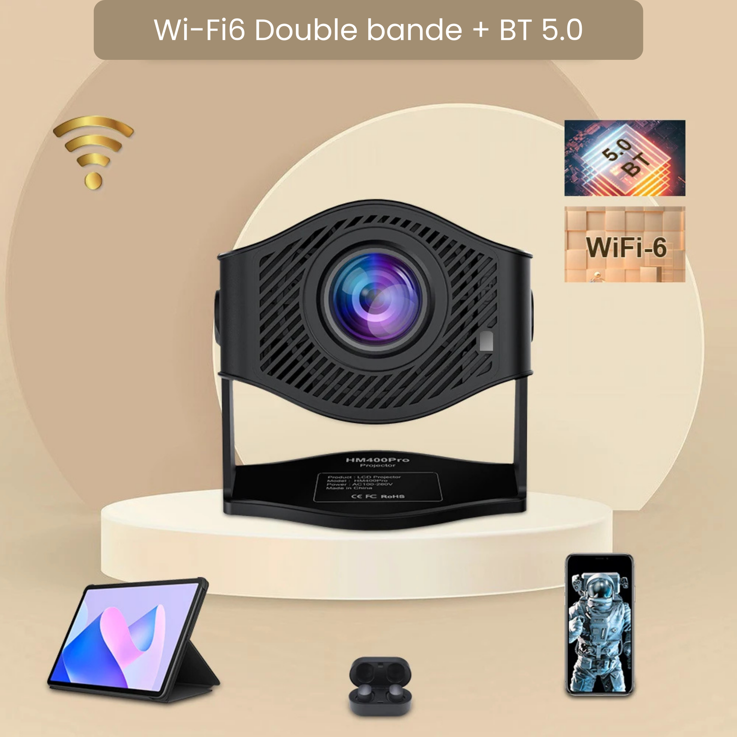 Vidéoprojecteur 4K Android 11 WiFi6 BT5.2 200 ANSI Portable